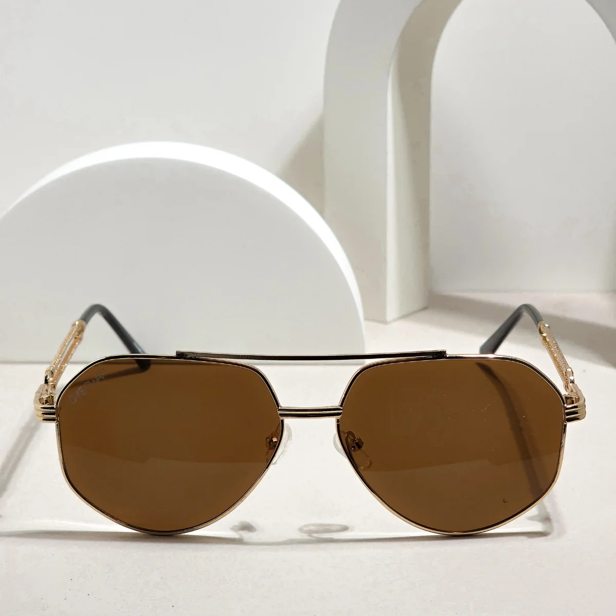 A DYESWAP 806 barna aviator nem a klasszikus „pilóta” vonalat követi, ez a modell sokkal modernebb, geometrikusabb, strukturáltabb. A lencsék enyhén szögletes kialakítása teszi igazán különlegessé, miközben az arany keret fényjátéka prémium hatást kelt.