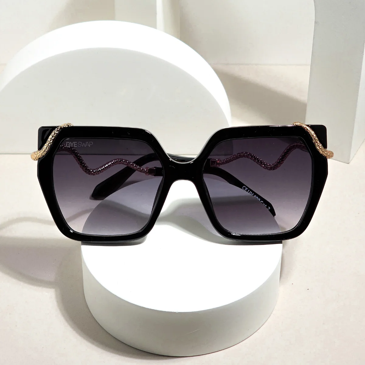 A DYESWAP 808 nem egyszerű cat eye napszemüveg: a szárakon végigfutó arany hullámvonalas díszítés egyedülálló finomságot visz a modellbe. A dizájn a magas divatházak ikonikus ékszereit idézi, miközben a mélyen árnyalt lencse modern, városi hangulatot kölcsönöz.